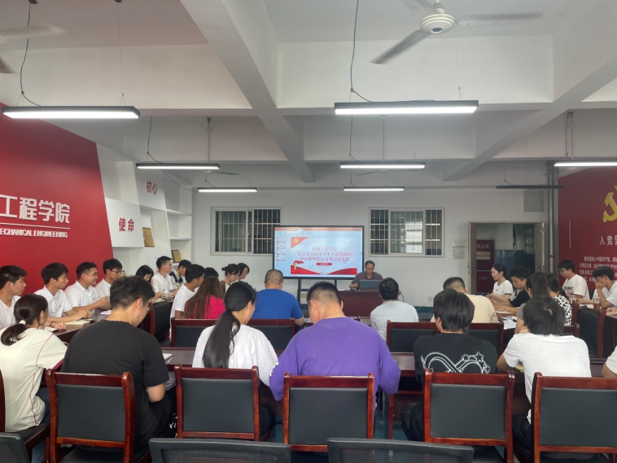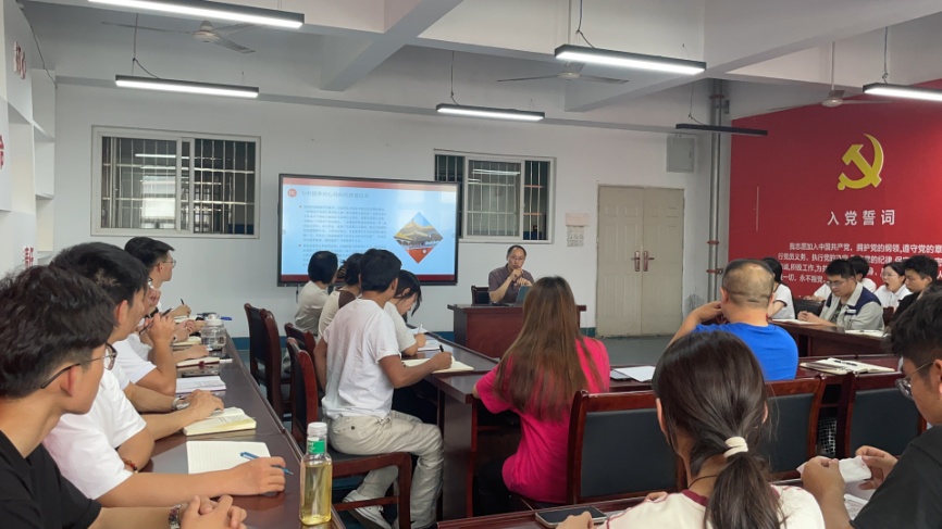 会上,党总支书记江辉为大家进行全方位讲解。首先,他强调作为入党积极分子,要坚持正确的政治方向,努力学习党的理论知识和党章。在思想和行动上向党组织靠拢,积极地学习优秀共产党员的高尚精神品质,不断汲取精神营养,凝聚奋进力量,把个人的前途同国家民族的前途结合起来,把个人的奋斗融入到集体的奋斗之中。其次,回顾了中国共产党百年来的奋斗历程,总结了党的历史经验和教训。他以党的历史重要事件和人物为例,讲述了党的光辉历程,使入党积极分子们更加深刻地理解中国共产党的伟大事业。最后,分享了他的党员先锋模范事迹,为积极分子们树立光辉的榜样,同时激励积极分子们做到学思用贯通,知行合一。