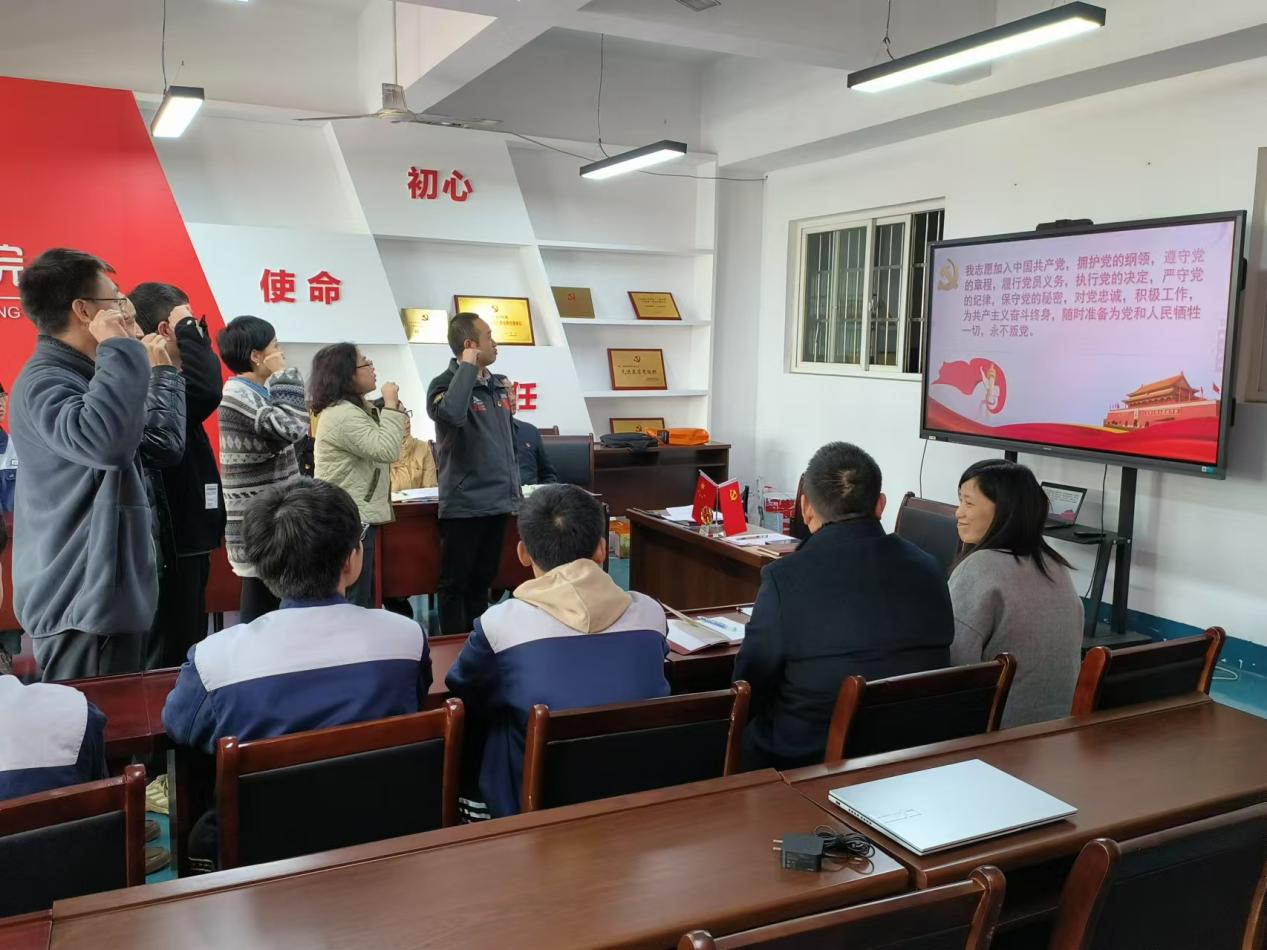 首先,组织党员过好政治生日,重温入党誓词。在支部书记的领誓下,全体党员面对党旗,庄严地举起右手,重温入党誓词:“我志愿加入中国共产党,拥护党的纲领,遵守党的章程…”铿锵有力的誓言在会议室回荡,激发了党员们的爱国热情和奋斗精神。同时支部还送上政治生日纪念品、组织党员分享心得,让每位党员都感受到了党组织的温暖与关怀。这一活动不仅增强了党员的归属感与责任感,也进一步激发了大家为党和人民事业不懈奋斗的热情与动力。