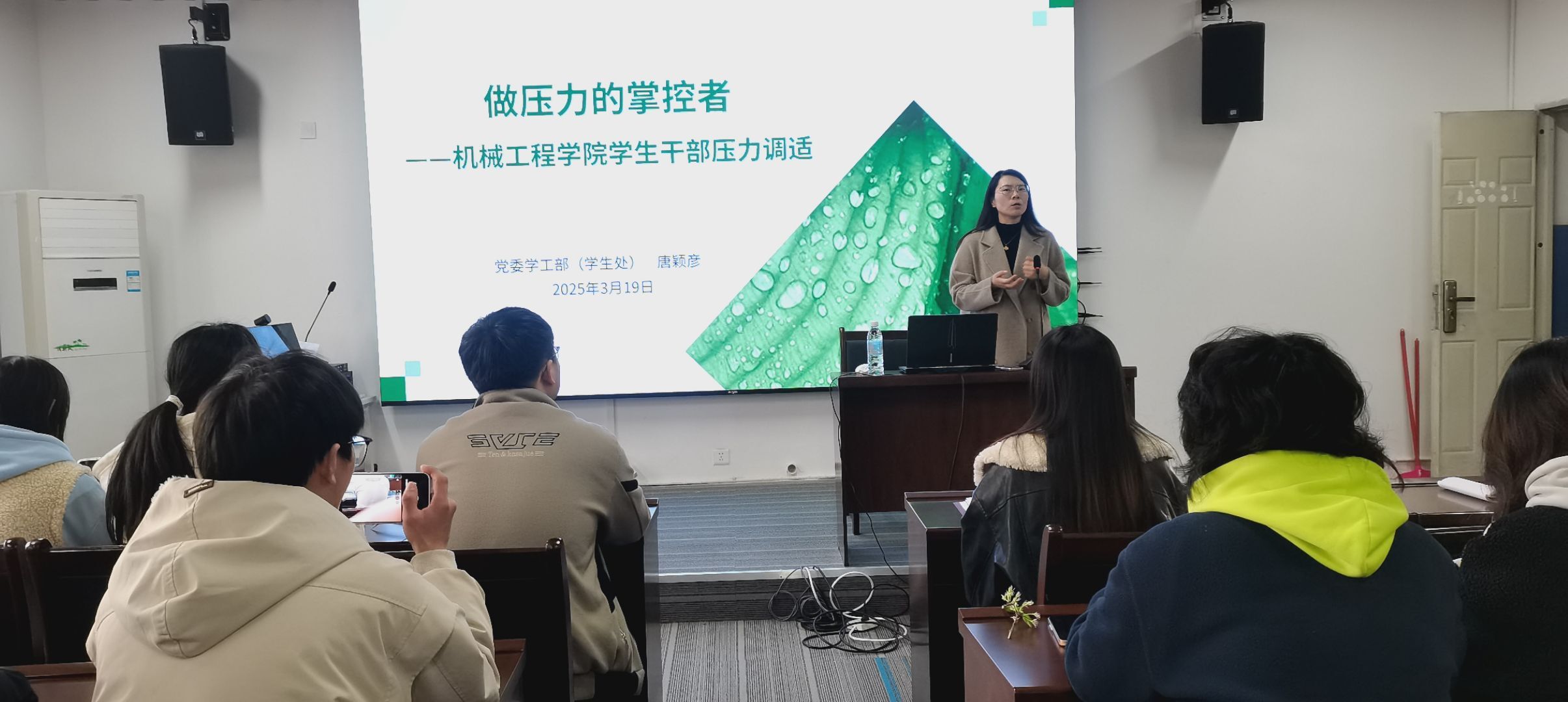 为提升员工干部的综合素质与抗压能力,3044永利集团3月19日16:00在实训楼A314开展了“菁英计划”员工干部培训班第四讲“做压力的掌控者”。本次培训特邀党委学工部(员工处)心理健康教育唐颖彦老师主讲,共计40余名员工干部参与其中。