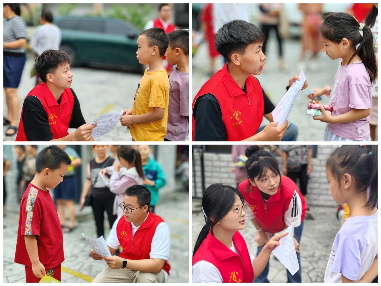 活动现场气氛热烈,实践团队成员立足志愿服务岗位,紧密结合崇福村生态实际与儿童认知特点,巧妙将国家“双碳”战略、生物多样性保护等内容融入趣味问答。围绕垃圾分类、水资源保护、动植物生态等内容设计的题目,既具科学性又富趣味性。“废旧电池属于哪类垃圾?”“我们能为保护家乡的河流做些什么?”一个个贴近生活的问题点燃了孩子们的热情,孩子们踊跃抢答,一幅热闹非凡的景象。“我知道!废旧电池是有害垃圾!”自信的回答与清脆的童声交织,赢得阵阵掌声。青年志愿者们的用心设计, 让抽象的生态知识在互动中鲜活起来,“守护家乡环境”的责任感悄然在孩子们心中生根。