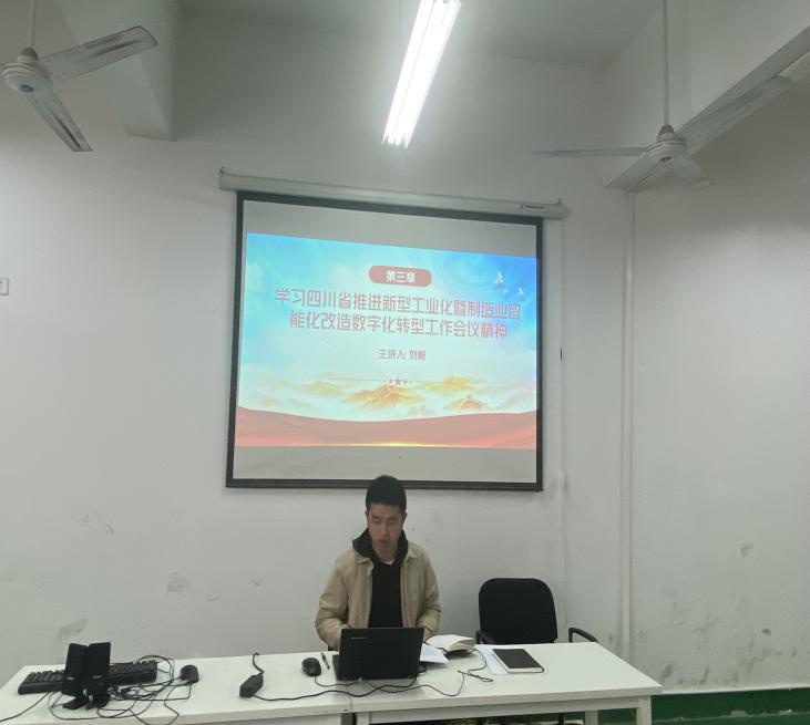 随后,党总支副书记席盈、教学负责人刘毅分别领学了2024年政府工作报告和四川省推进新型工业化暨制造业智能化改造数字化转型工作会议精神。