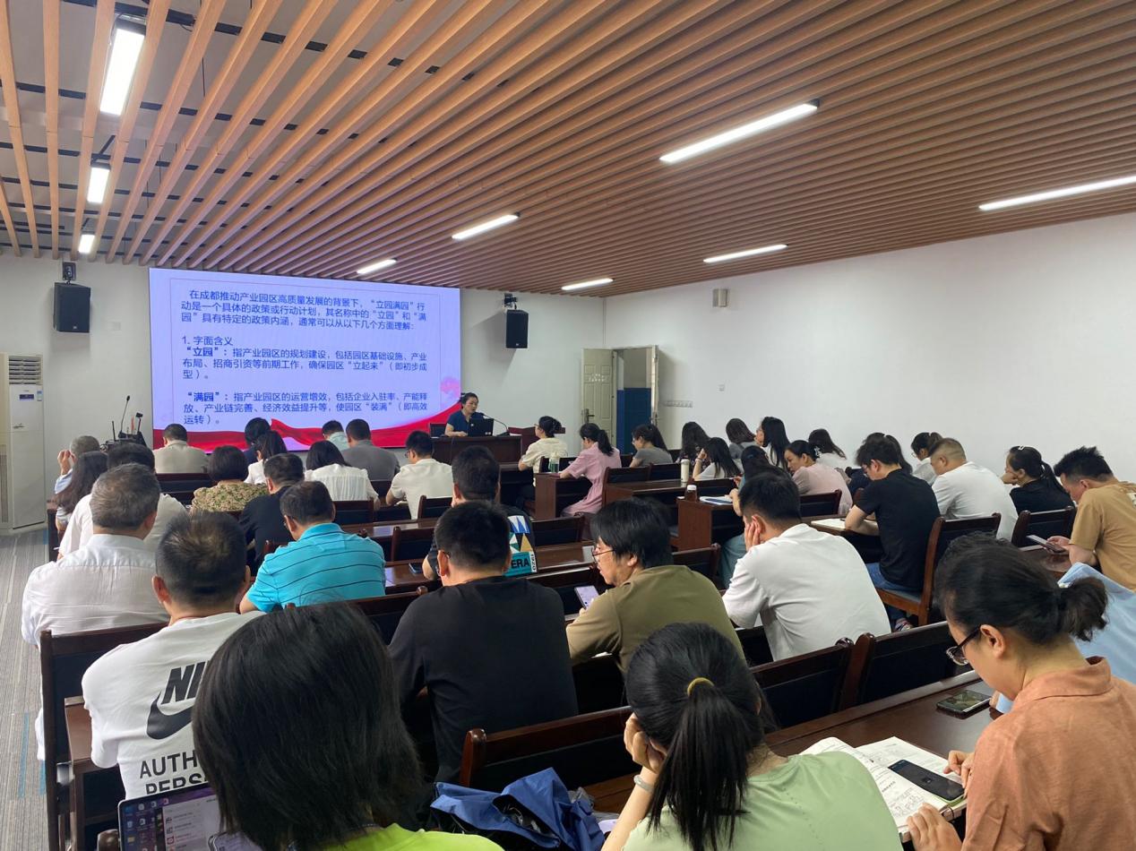 活动伊始,3044永利集团党总支副书记席盈对成都市“立园满园”行动展开了全面且深入的解读。她从政策出台的宏观背景出发,详细剖析了该行动产生的时代契机与政策导向;接着深入阐释了“立园满园”的丰富内涵与核心要义,指出“立园”阶段侧重于完善产业园区的基础设施建设与科学合理的产业布局规划,为园区发展筑牢根基;“满园”阶段则聚焦于提升园区的运营效率与经济效益,实现园区的可持续发展。席盈副书记还通过实际案例,生动展示了公司在产教融合、校企合作方面已取得的阶段性成果以及未来的发展规划,并鼓励全体教职工积极投身到“校、园、企、地”四位一体的融合发展建设中,充分发挥公司的人才和技术优势,为成都产业园区的高质量发展提供坚实的支撑。