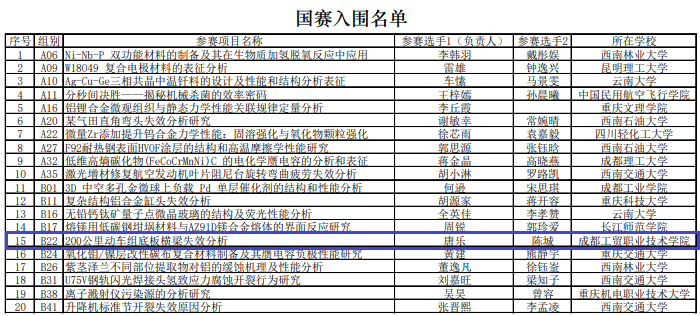公司学子在第一届全国老员工材料分析 大赛(西南赛区)荣获一等奖