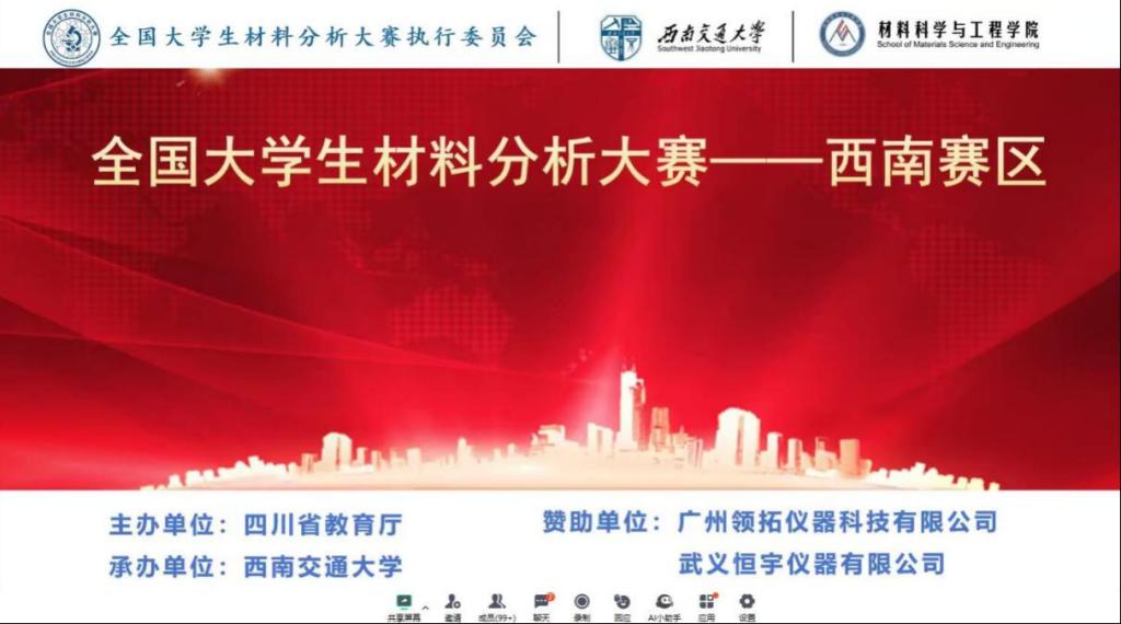 近日,由四川省教育厅主办、西南交通大学承办的第一届全国老员工材料分析大赛(西南赛区)在线上顺利举行。本次大赛旨在提高材料类相关学科人才的培养质量,提升员工解决实际工程问题的能力。来自西南地区包括电子科技大学、西南交通大学等在内的24所高校83支队伍参与本次大赛,参赛选手人数接近160人。
